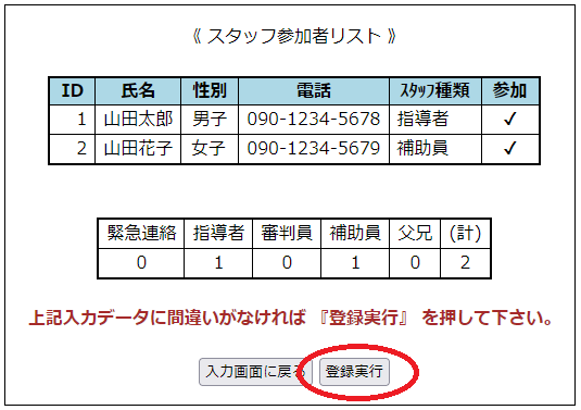 3. 内容に間違いがなければ「登録実行」ボタンを押す。
