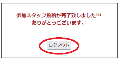 4. 投稿完了メッセージを確認して「ログアウト」ボタンを押す。