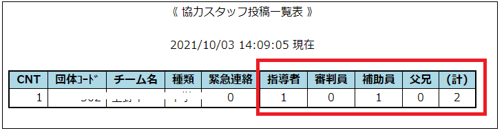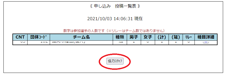 5. 申し込み投稿一覧の下に、「協力スタッフ」ボタンがあるので、クリックして自分の投稿を確認する。